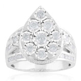 Sterling silver 2 carat diamond pear shaped cluster dress ring.