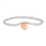 Sterling Silver 2-Tone Bead Bracelet With Heart Charm