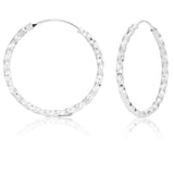 Tired of the same old hoops? Well prepare to be pleasantly surprised with these Sterling Silver Fancy Hoops. With an intricate, textured pattern, 27mm size and a dazzling lustre finish, it’s lightweight and perfect for a ladies night out.
