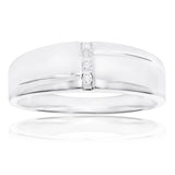 Sparkle wherever you go with this contemporary Sterling Silver Diamond Ring. With a sleek, minimal design and three brilliant cut diamonds, it’s a ring that exudes sophistication, style and opulence.