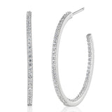 Sterling Silver 32mm Double Edge Zirconia Hoop Earrings