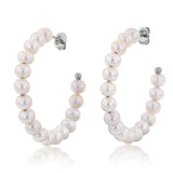 Show off timeless beauty in these Sterling Silver 5.5-6mm 35mm Diameter Freshwater Pearl 3/4 Hoops. Set in a hoop design, these white freshwater pearls combine for an elegant gleam. Each piece is held in sterling silver for a subtle contrast and durable finish.
