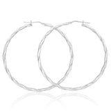 Embrace an 80s look of bold colours, big hair and large earrings with these sparkly 50mm Twisted Hoop Earrings. Crafted from hypoallergenic sterling silver and with a beautiful textured pattern, these earrings will have you belting Cher’s 80s hits like no tomorrow.