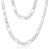 Celebrate a special occasion or simply treat yourself with the classic charm and enduring style of this Sterling Silver Diamond Cut Figaro 1-3 Chain. This bold chain is expertly crafted from premium sterling silver for a polished look and feel. The figaro style consists of one lengthened chain link for every smaller three, creating an eye-catching pattern and strong alternative appearance. A chain is a fashion staple that you can wear daily, and this silver chain is perfect for that kind of everyday use.