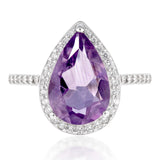 Embrace the dreamy hues of amethyst with this gorgeous Sterling Silver Amethyst and Zirconia Pear Ring. A singular pear shaped gemstone sits at the centre of the ring and is eye-catching from any angle. Set in a halo setting, the glitter of zirconia highlights the amethyst and creates an unmissable sparkle! Not only that, but the band is paved with smaller stones that sparkle from every angle. A dress ring that you will want to wear everyday - you will instantly fall in love with this marvellous design.