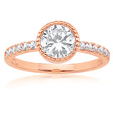 Glistening in stunning rose gold, this Sterling Silver and Rose Gold Plated Zirconia Ring makes any outfit pop. A breathtaking white zirconia sits in the middle of the ring, dazzling with its pristine colour and intricate cut. Small zirconia gemstones rest on the band for a full, glistening look.