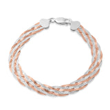 Unique and alluring, this Silver and Rose Plated Plait Bracelet is a definite statement piece. Crafted from hypoallergenic silver and with its mesmerising glimmer, it exudes sophisticated style and class.