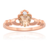 Sterling Silver and Rose Plated Crystal and Zirconia Claddagh Ring *No Resize*