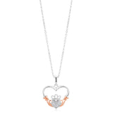 The true epitome of Irish love and that signifies loyalty, friendship and love, this Sterling Silver and Rose Plated Zirconia Claddagh Pendant will surely make a priceless gift for someone special. The Claddagh design comprises rose plated hands, a sterling silver heart and the crown which is accentuated with Zirconia that makes the pendant all the more glamorous. The perfect combination of sterling silver and rose plating twofold the beauty of this pendant.