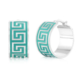 Sterling Silver Aqua Enamel Greek Key Wide 18mm Hoop Earrings