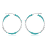 Introducing our Sterling Silver Aqua Enamel on Twisted Hoop Earrings, a stunning fusion of style and sophistication. Made from high-quality sterling silver, these hoops feature a lustrous enamel coating that adds a pop of colour and a dash of charm to your ensemble. The twisted design of the hoops creates a captivating texture, ensuring these earrings are not only a versatile accessory but also a unique statement piece.