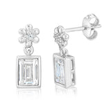 Sterling Silver Baguette Cut Cubic Zirconia Drop Earrings
