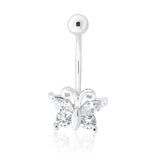 Elevate your belly piercing with our exquisite Sterling Silver Belly Bar featuring a Zirconia Butterfly design, a captivating blend of elegance and allure. Crafted from premium sterling silver, this belly bar showcases a graceful butterfly adorned with marquise and brilliant-cut cubic zirconia stones that shimmer with beauty. With a sleek thickness of 1mm and a width of 11.2mm, it strikes the perfect balance between subtlety and sophistication, ensuring both comfort and style. Whether you're looking to make a statement or add a touch of glamour to your belly piercing, this accessory is a versatile and eye-catching choice. Wear it with confidence and let it be a symbol of your unique style and individuality.