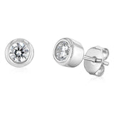Sterling Silver Bezel Set Round White Cubic Zirconia Stud Earrings