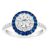 Sterling Silver Blue And White Zirconia Fancy Ring