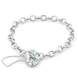 Sterling Silver Blue Cubic Zirconia Belcher Padlock Bracelet 19cm
