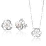 This Sterling Silver Boxed Freshwater Pearl Flower Set is perfect for the pearl lovers out there. The luxurious sterling silver has been shaped into a flower with three of the petals set with shiny zirconia. Wear the set together or separately they look great either way.
