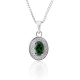 Sterling Silver Created Emerald and Zirconia Oval Pendant