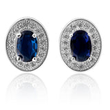Sterling Silver Created Sapphire and Zirconia Oval Studs