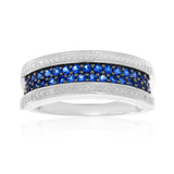 Sterling Silver Created Sapphire + Cubic Zirconia Stripe Ring