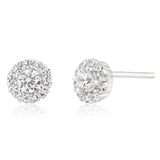 Complement your personal style with this sterling silver cubic zirconia cut halo stud earrings. Decked with sterling silver and finely cut cubic zirconia, these stunning halo earrings will amplify your style statement. The outer circle of the stud earrings embedded with tiny zirconia crystals gives it a fine look and the big zirconia stone in the epicentre enhances its shininess even more.