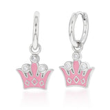 An adorable design, these Sterling Silver Cubic Zirconia Enamel Coated Crown Hoop Earrings are great for younger girls. With a comfortable huggie hoop design, they are especially comfortable for everyday wear and sleeping. The dangling pendant features a sweet crown design with bright pink enamel that is girly and sweet. Complete with the sparkle of cubic zirconia, these earrings are perfect for little princesses.