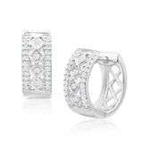 Sterling Silver Cubic Zirconia Fancy Huggie 12mm Hoop Earrings