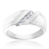 This flashy gents ring features a unique design with classy character. The ring features clear zirconia stones that have been set into a diagonal line. With a premium sterling silver build, this ring will easily last years to come and offers a luxurious feel.