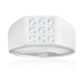 • The ring comprises a 3*3 grid and in each grid, cubic zirconia is studded finely.