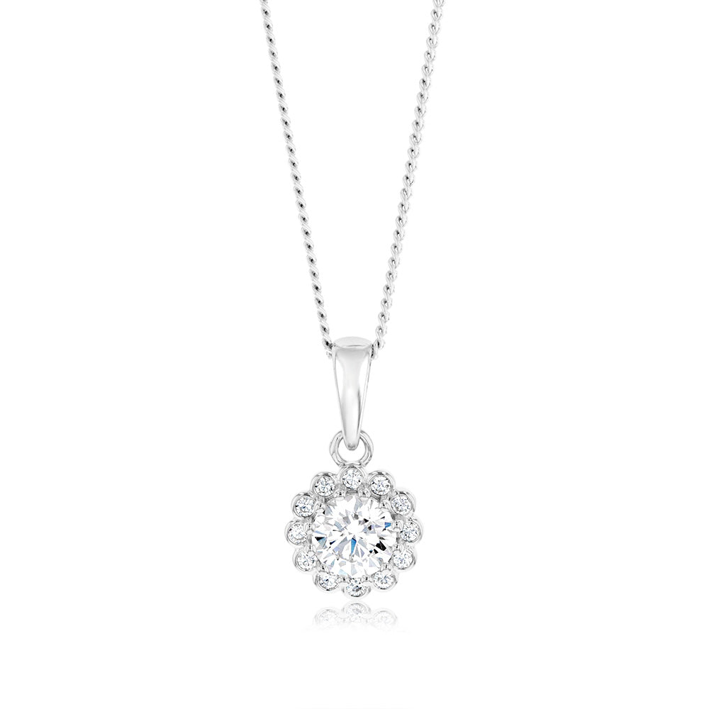 Sterling Silver Cubic Zirconia Halo Pendant And Stud Earrings Set