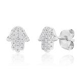 These Sterling Silver Cubic Zirconia Hamsa Stud Earrings have a beautiful glow, with a coating of stunning gemstones. The Hamsa is a traditional symbol of protection, and is an ever-popular piece of decoration and symbolism.
