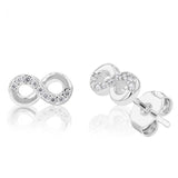 Beautiful infinity earrings with sparkling crystal settings. The curving infinity sign is set with stunning zirconia crystals, symbolising ever-lasting beauty.