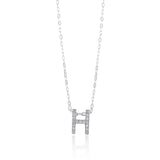 Celebrate your individuality and style with our Sterling Silver Cubic Zirconia Initial "H" Pendant on a 39+3cm Chain, a stunning fusion of elegance and personal expression. This pendant features the letter "H" embellished with sparkling cubic zirconia stones, adding a touch of brilliance and meaning to your neckline. Crafted with meticulous attention to detail, the pendant is made from high-quality sterling silver, ensuring both durability and timeless beauty. Suspended from a 39+3cm chain, it rests gracefully close to your heart, allowing you to proudly showcase your unique identity or offer a thoughtful and personalised gift to a loved one. Elevate your look with our Sterling Silver Cubic Zirconia Initial "H" Pendant, a symbol of individuality and enduring style that captures the essence of you.