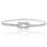 Looking for a new bangle to add to your collection this Sterling Silver Knot Hinged Bangle has been set with clear zirconia gemstones so the entire front side shines when it hits the light. The knot creates an interesting design to make it stand out from your other bangles.
