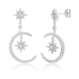 Embody celestial beauty with these alluring Silver Zirconia Moon and Star Drop Earrings. Made from hypoallergenic sterling silver and featuring two eight pointed stars and crescent moon studded with sparkly cubic zirconias, these earrings are bewitching to say the least.