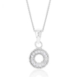 A simple, yet striking design, this beautiful Sterling Silver Cubic Zirconia On Circle Pendant is wonderful in its subtle details. The pendant features a circle that is embellished with the glitter and shine of zirconias reflecting from every angle. Crafted in quality sterling silver by skilled jewellery makers, this necklace is sweet in its simplicity. Wear it on its own or pair it with other silver chains for a curated look.
