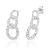 These stylish and trendy Rhodium Plated Sterling Silver Cubic Zirconia Chain Link stud earrings are a must have in the jewellery collection. The earing features 3 links slanted on an angle with cubic zirconia set on them. These light weight earrings are a great option for those occasions when you want to stand out and make a statement.