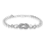 Elevate your wrist with the exquisite beauty of our Sterling Silver Cubic Zirconia on Knot Curb 19cm Bracelet. Crafted with precision and attention to detail, this bracelet marries timeless elegance with a touch of contemporary charm. The intricate knot design, adorned with sparkling cubic zirconia gemstones, adds a dash of glamour to your wrist, capturing the eye with its radiant brilliance. Made from high-quality sterling silver, the curb chain complements the dazzling stones, creating a luxurious accessory that's suitable for both formal occasions and everyday wear. With its secure clasp and adjustable length, this bracelet ensures a comfortable fit for wrists of all sizes. Elevate your style and celebrate your individuality with the Sterling Silver Cubic Zirconia on Knot Curb 19cm Bracelet – a symbol of enduring beauty and sophistication.