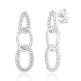 These Rhodium Plated Sterling Silver Cubic Zirconia Chain Link drop earrings are trendy and stylish. The earing features 3 links and 2 of them have cubic zirconia set on them. This lightweight earring is a bestseller and is sure to make a statement. It is a great option for those occasions when you want to look your best and stand out.