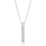 Enhance your style with the exquisite Sterling Silver Cubic Zirconia On Vertical Bar Pendant. Crafted with precision and elegance, this pendant showcases a sleek vertical bar design in sterling silver, providing a timeless and sophisticated look. The pendant features shimmering cubic zirconia stones delicately set along the bar, adding a touch of sparkle and glamour. Versatile and eye-catching, this pendant is the perfect accessory for both casual and formal occasions. Whether worn alone or layered with other necklaces, this Sterling Silver Cubic Zirconia On Vertical Bar Pendant is a stunning piece that effortlessly elevates your jewellery collection.