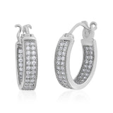 Sterling Silver Cubic Zirconia Pave Hoop Earrings
