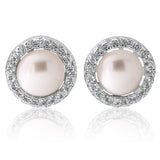 Sterling Silver Cubic Zirconia + Pearl Halo Stud Earrings