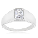 This sterling silver ring features a rectangular cut sparkly zirconia stone that evokes a masculine style. The sterling silver build means this ring will easily last for years to come. A versatile ring that can be worn for any occasion, pair it with your favourite silver jewellery to complete the look.