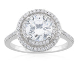 Sterling Silver Cubic Zirconia Solitaire Pendant Chain and Halo Ring Set