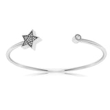 Step out in a lovely Sterling Silver Cubic Zirconia Star Open Adjustable Bangle and take your bracelet look to the next level. The ends of the bracelet feature a star and moon design that is embellished with glittering crystals, letting you adorn the wonders of celestial themed jewellery. Crafted in the shiny lustre of sterling silver, this bracelet is also flexible which means that you can adjust its size to fit your wrist perfectly.