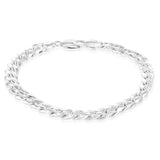 Elevate your look with this Sterling Silver Curb Beveled 23cm Bracelet. This beveled curb style piece features flattened and twisted interlocking links, adding a sleek and sophisticated touch to your look. Crafted with sterling silver and 23cm in length, this statement chain is perfect for any occasion.