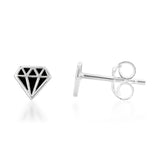 Sterling Silver Diamond Shaped Black Enamel Stud Earrings