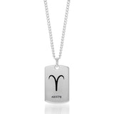 Sterling Silver Dog Tag With Aries Zodiac/Star Sign Pendant