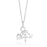 A treasure of fine detailing and strong symbolism, this Sterling Silver Faith Hope Charity Pendant is a wonderful addition to any outfit. The sterling silver craftsmanship exudes a timeless glow with unbeatable strength. With a heart, cross and anchor pendant all secured onto one necklace, this piece showcases extreme versatility and individuality. The pendant is complete with a reflective polished shine that catches the light from every angle. Whether you purchase the pendant as a gift or a treat for yourself, this accessory will offer happiness and good luck to the wearer.
