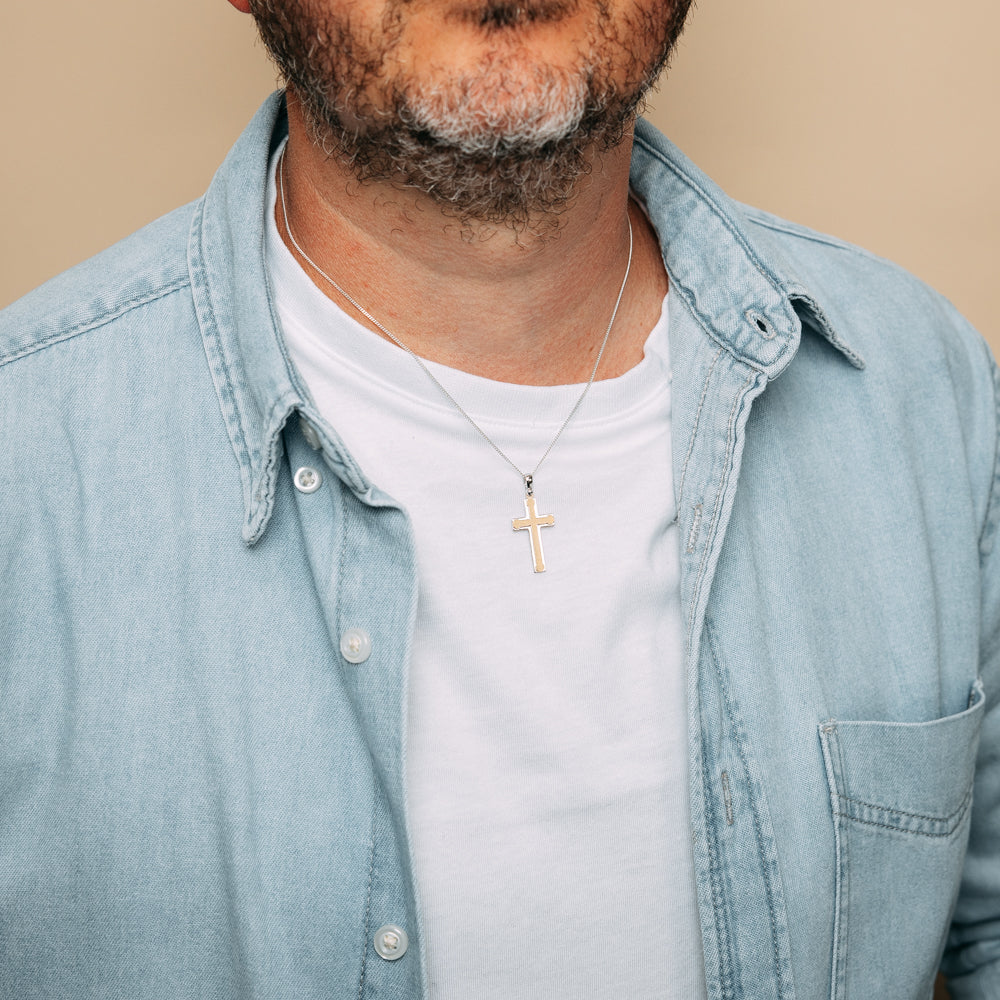 Sterling Silver Fancy Cross With 9ct Gold Edge Pendant
